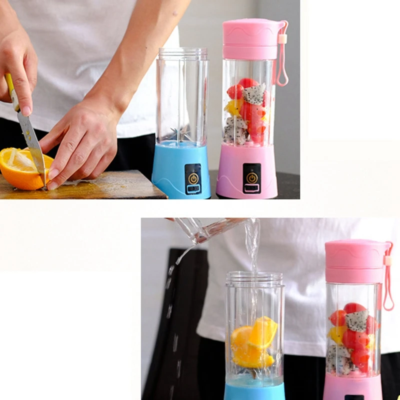 380Ml Portable Juicer USB Rechargeable 6 Blades Juicer Smoothie Blender Machine Mixer Mini Juice Cup Blue