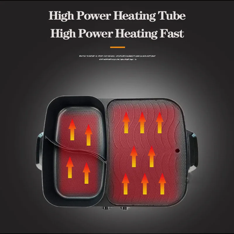 Multi-function Double Control Roasting One Pot Electric Hot Pot Household Electric Hot Pot Barbecue Non-stick Gift