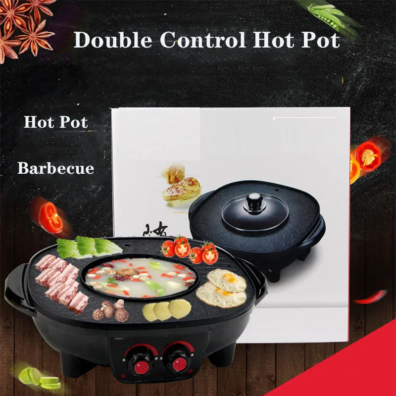 New Type Double Control Hot Pot Household Brush Baking Sun Moon God Pot Korean 220 V Electric Hot Pot Electric Baking Plate