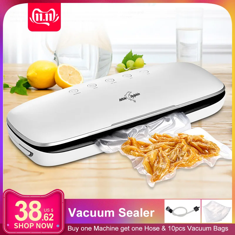 White Dolphin Home Food Vacuum Sealer Machine 220V 110V Electric Vacuum Packaging Machine Food Sealer With 10PCS Storage Bags