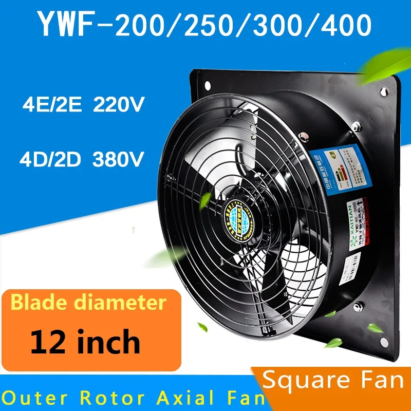 12in 220 380V 90 160W Square Outer Rotor Axial Fan Industrial fan Suitable for Workshops Warehouses etc