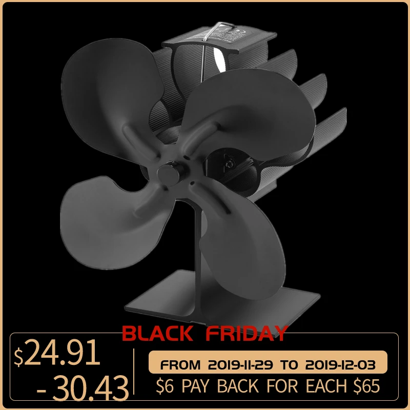 4 Blades Heat Powered Stove Fan Log Wood Burner Ecofan Quiet Black Home Fireplace Fan Efficient Heat Distribution